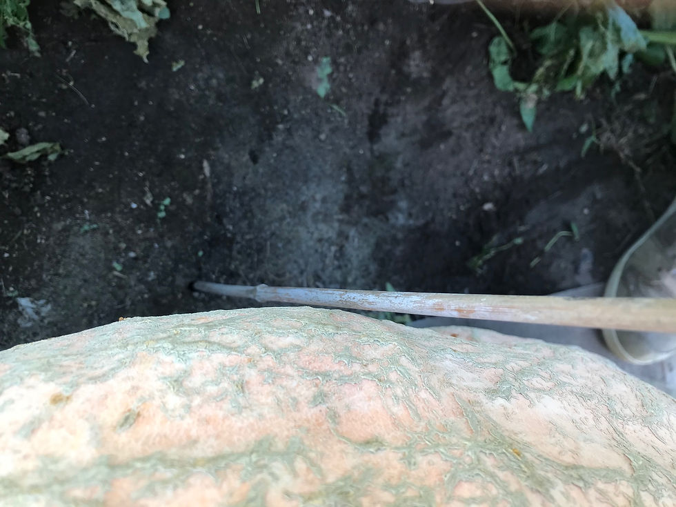 This is the 1959 Hunt it is the back up plant as the first one I started early had too much stress and this one out grew it, it’s about seven feet and showing great root growth, I grew this seed last year and it was a back up as well hopefully this one will do better it is in a patch I rested last year