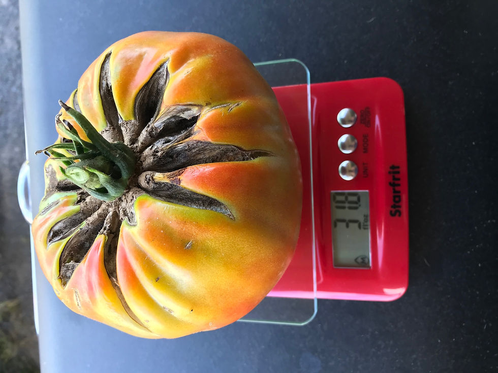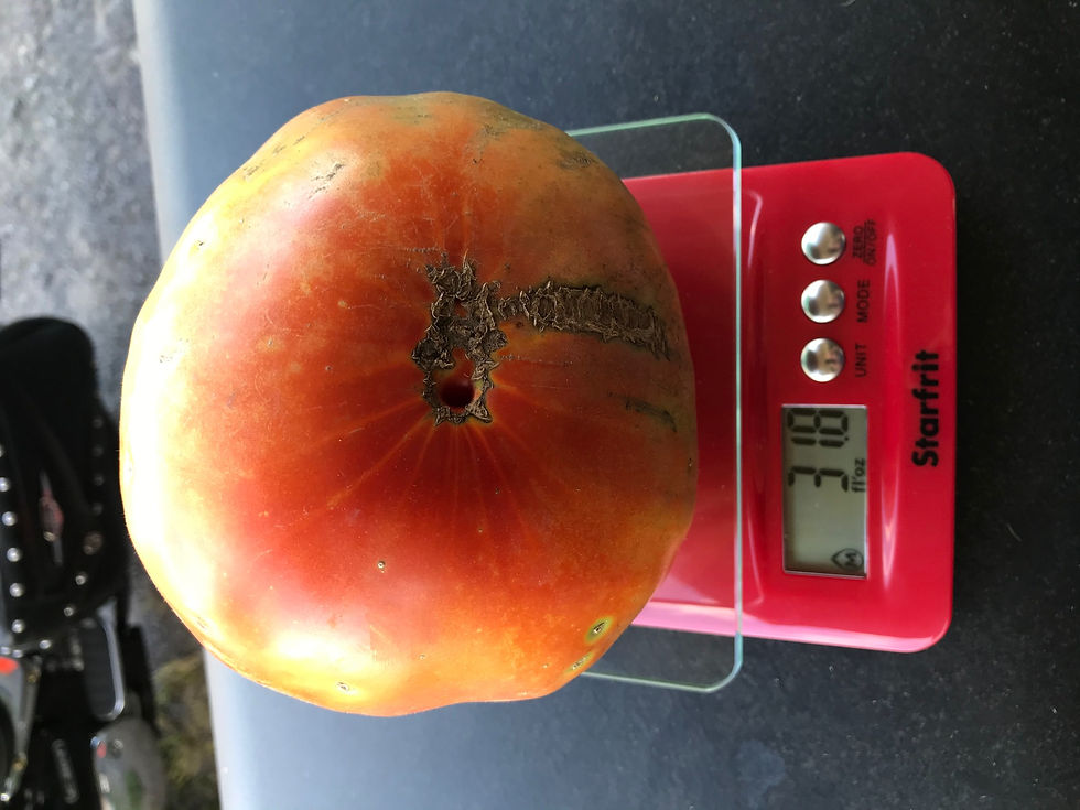1lb 12.3 ozs ...1.76lbs ? For team #3 grown from 5.75 Hunt .. a thunderstorm 2 weeks ago broke both branches off the plant and it had no leaves left except a small sucker growing below the tomato it hadn’t grown much since