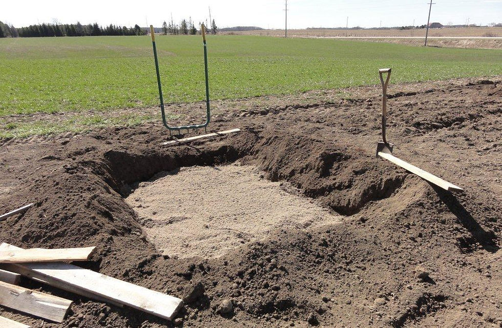 After we loosened the soil with a broadfork. We put down a bed of sand for the heating cables to lay on.