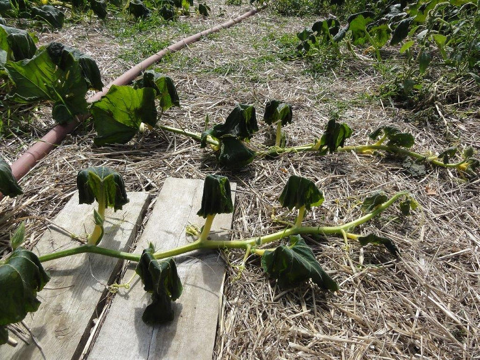 The shade structures we put up seem to helping a lot, preventing most of the damage from this intense heat spell. We have been giving between 90 and 100 gallons of water to each plant every day. We bury vines every fourth day and will soon have to start terminating vines.
