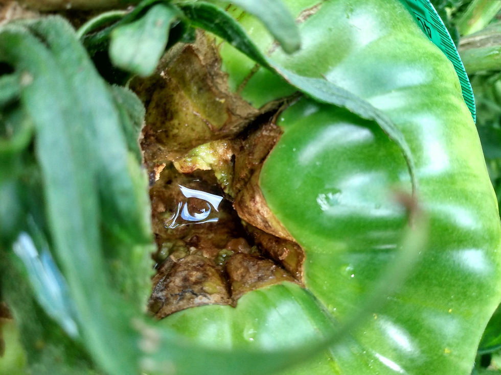 Ah well, still have 6 fruits and 8 plants left. Went way light though. Measuring at 20.5, 16, and 16, for an estimate of 2.6, but weighed 2.01, so not great. Won't bother saving seeds. The irony is it came from my tomato last year that rotted the same way.