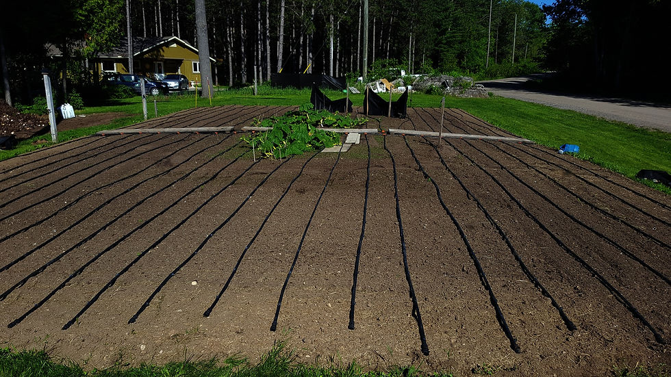The garden always looks great with a fresh till and the drip tape down. That's why I always take a picture. In a week it will be fully green with weeds.